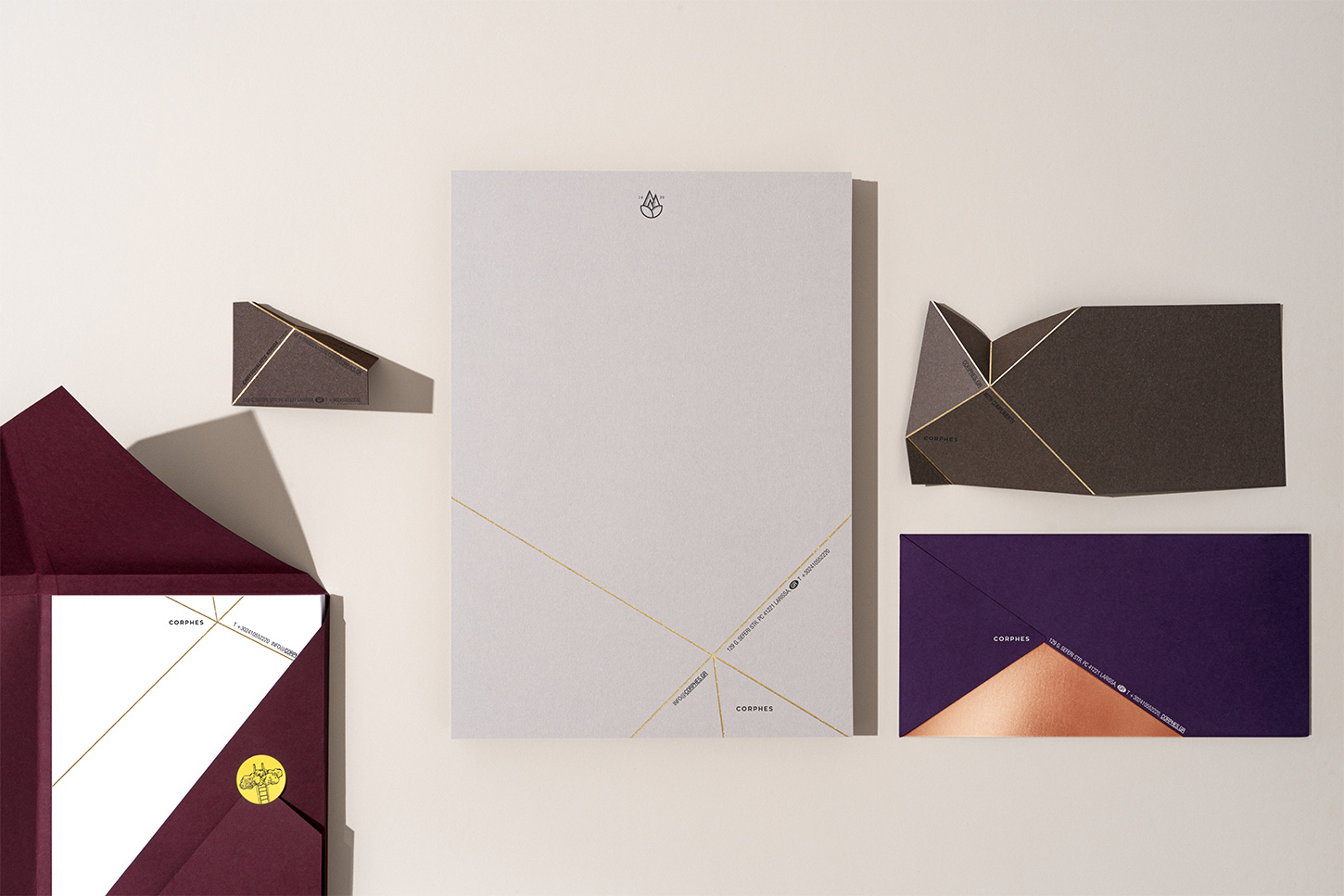 We designed the corporate identity of the Coprhes Organic Products to be aligned with the brand image we had already created. It was based on the brand’s key feature, the natural cultivation in the highest altitude possible in Greece. We were inspired by the “golden” ridge, the beautiful scenery during sunrise, the people who collect the brand’s herbs and spices, face.